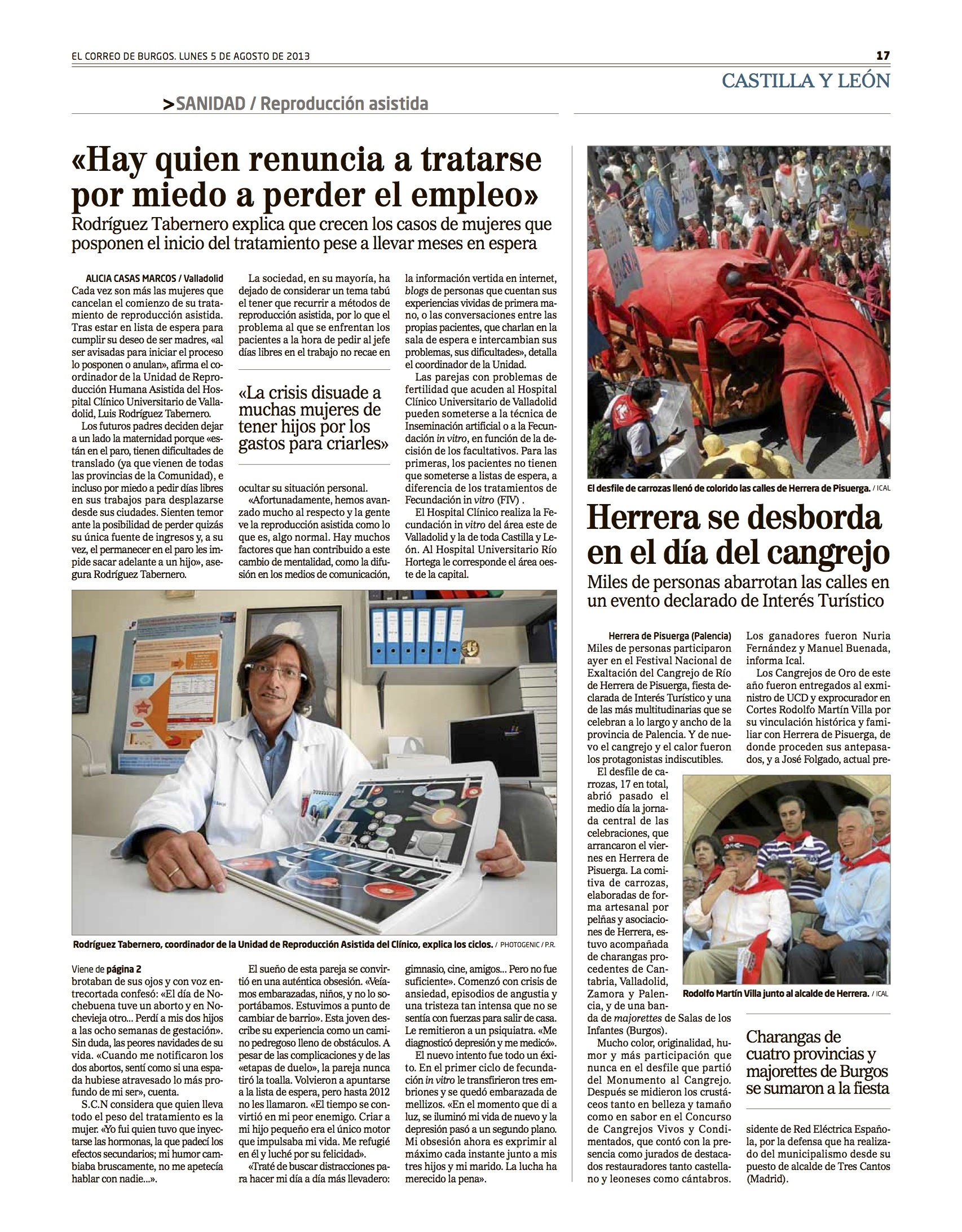 Sacyl ‘custodiará’ óvulos de mujeres con cáncer hasta que puedan gestar mayo 11, 2014 de Alicia Casas Marcos Deja un comentario Noticia publicada en El Mundo / Diario de Valladolid, el lunes 5 de agosto de 2013. Enlace a noticia página 1 en PDF Enlace a noticia página 2 en PDF Comparte esto: Haz clic para compartir en X (Se abre en una ventana nueva) X Haz clic para compartir en Facebook (Se abre en una ventana nueva) Facebook Me gusta Cargando... Relacionado