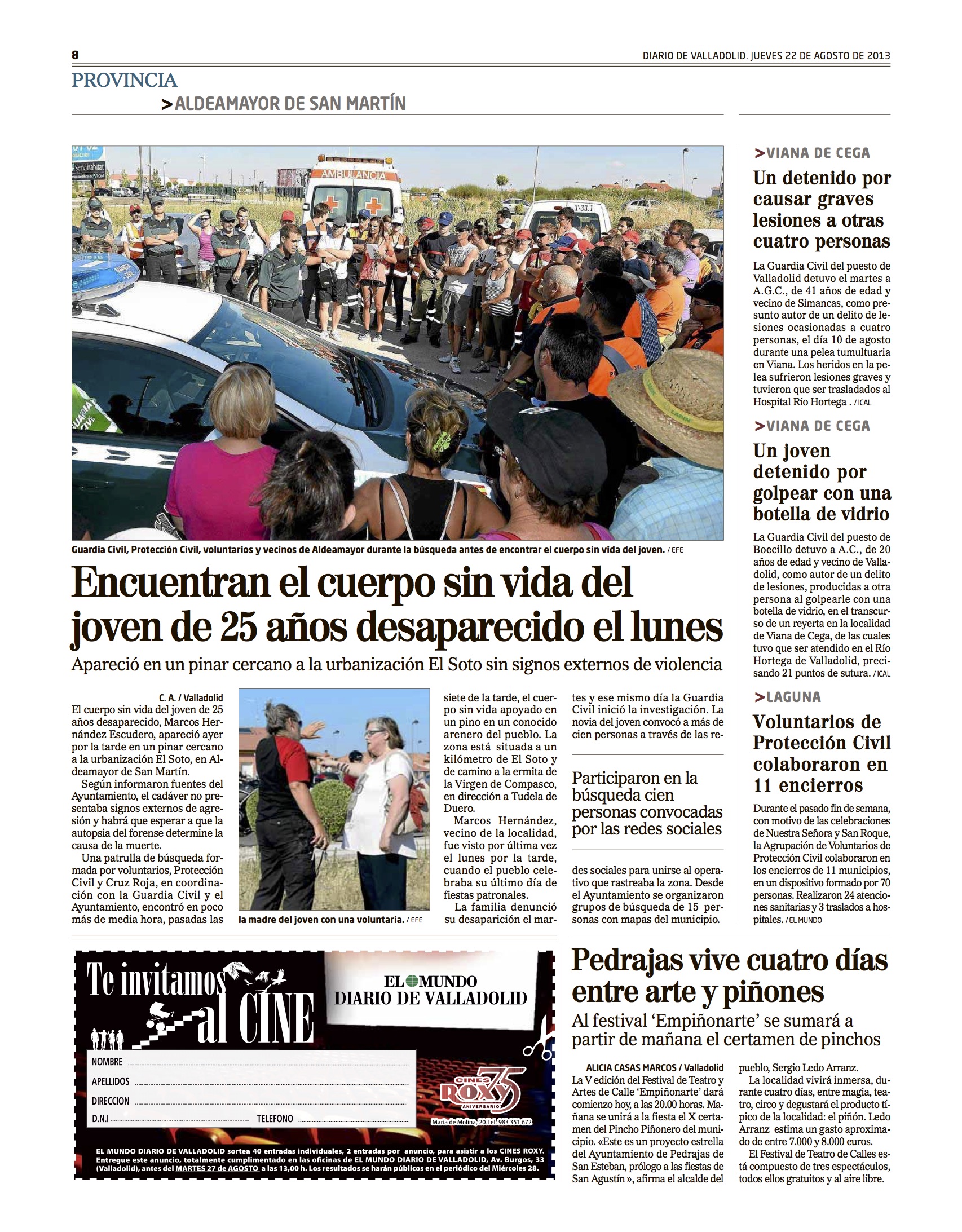 Pedrajas vive cuatro días entre arte y piñones marzo 6, 2015 de Alicia Casas Marcos Deja un comentario Noticia publicada en El Mundo / Diario de Valladolid, el jueves 22 de agosto de 2013 Enlace a noticia en PDF Comparte esto: Haz clic para compartir en X (Se abre en una ventana nueva) X Haz clic para compartir en Facebook (Se abre en una ventana nueva) Facebook Me gusta Cargando... Relacionado