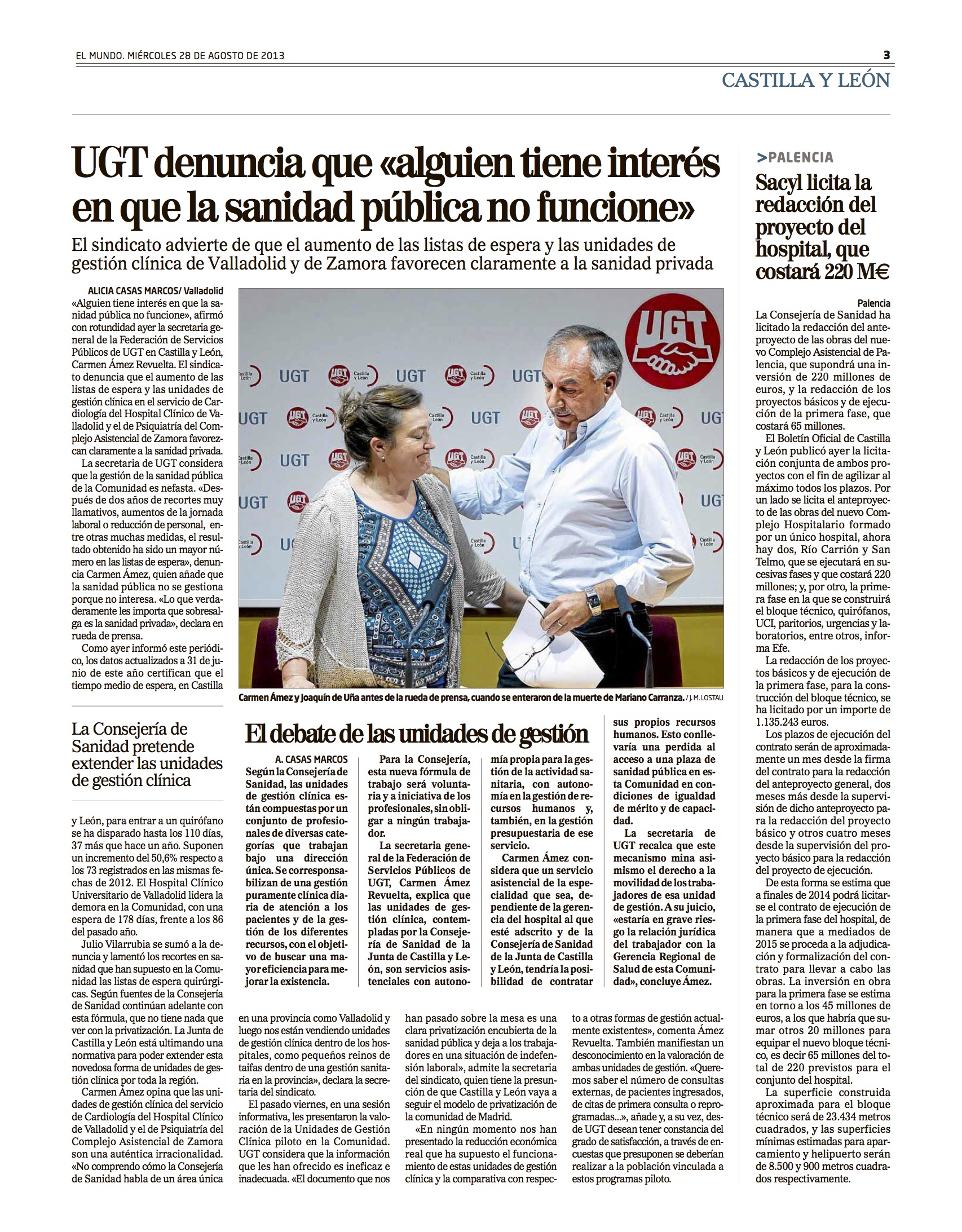 UGT denuncia que «alguien tiene interés en que la sanidad pública no funcione» marzo 7, 2015 de Alicia Casas Marcos Deja un comentario Noticia publicada en El Mundo / Diario de Valladolid, el miércoles 28 de agosto de 2013 Enlace a noticia en PDF Comparte esto: Haz clic para compartir en X (Se abre en una ventana nueva) X Haz clic para compartir en Facebook (Se abre en una ventana nueva) Facebook Me gusta Cargando... Relacionado