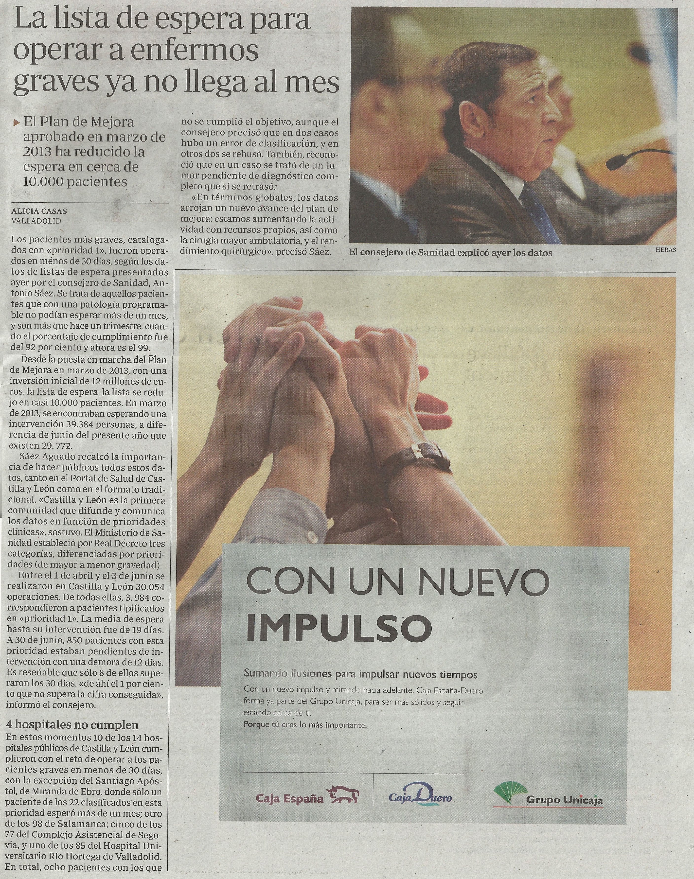 La lista de espera para operar a enfermos graves ya no llega al mes marzo 12, 2015 de Alicia Casas Marcos Deja un comentario Noticia publicada en ABC, el 15 de julio de 2014 Enlace a noticia en PDF Comparte esto: Haz clic para compartir en X (Se abre en una ventana nueva) X Haz clic para compartir en Facebook (Se abre en una ventana nueva) Facebook Me gusta Cargando... Relacionado